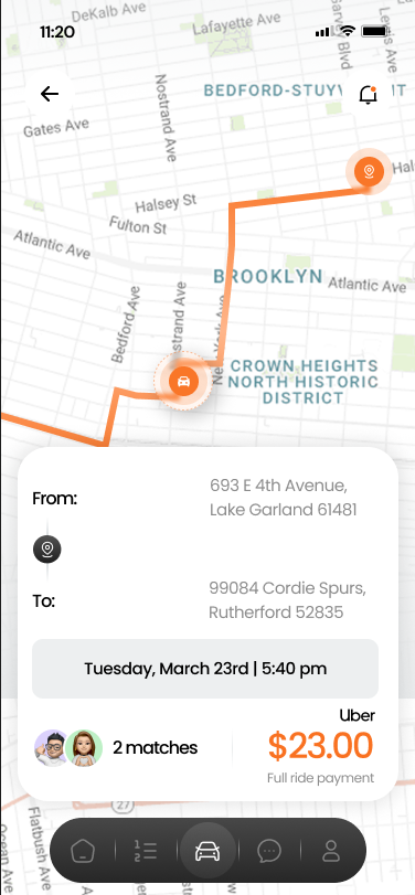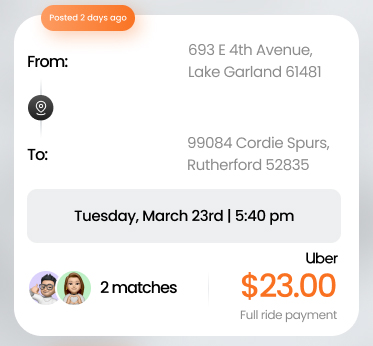 We'll suggest potential matches who are heading your way. Accept a match, share a ride, and start a conversation with our personalized icebreakers based on your common interests.