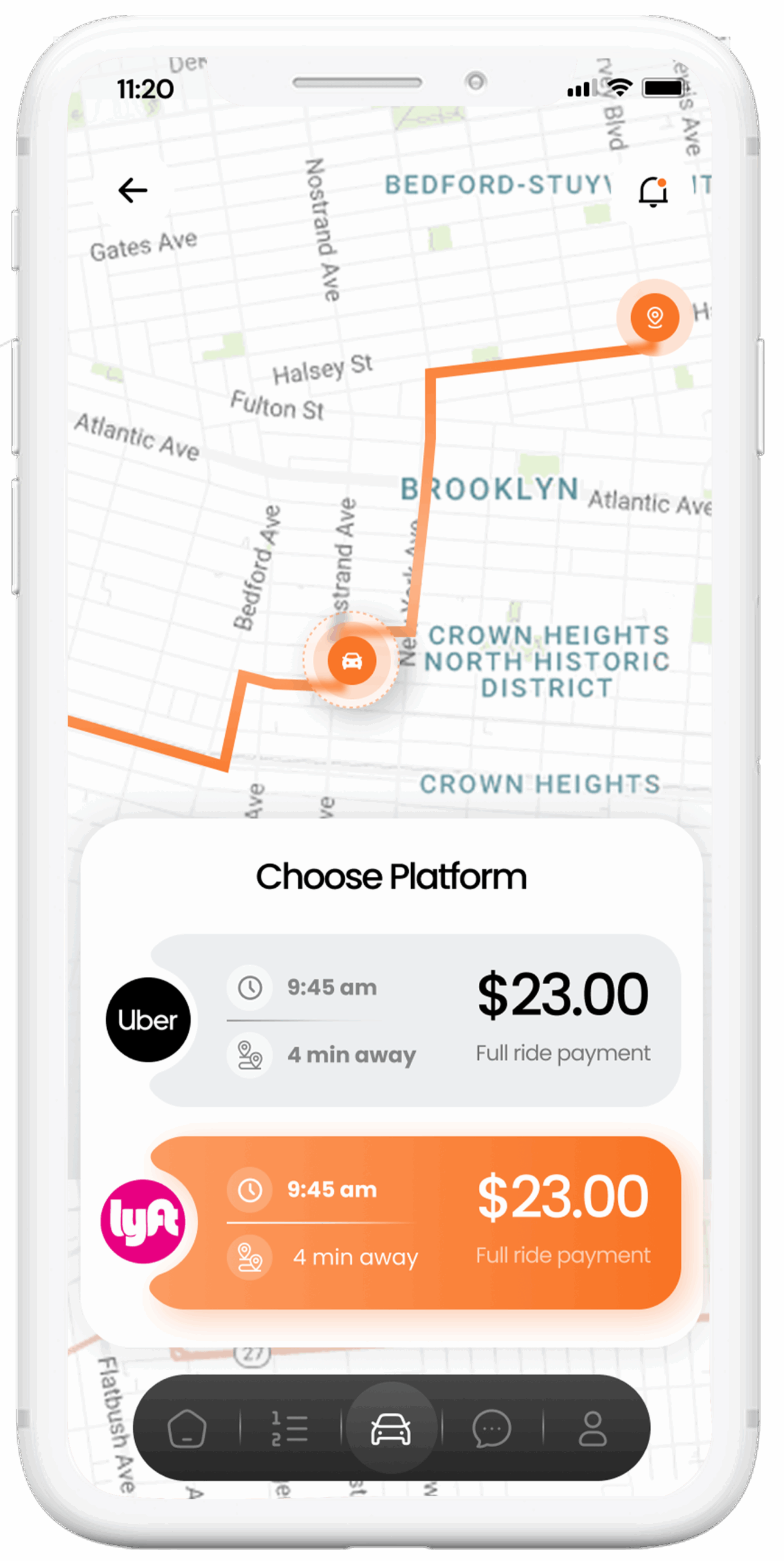 Enter your destination and compare live prices between Uber and Lyft right in our app. Choose the option that works best for your wallet.